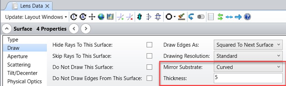 在這一點(diǎn)上,來(lái)自LCD窗口的布局光線似乎與風(fēng)擋玻璃沒(méi)有相互作用。風(fēng)擋玻璃是一個(gè)布爾原生對(duì)象:它是矩形體積和由2個(gè)擴(kuò)展多項(xiàng)式曲面組成的復(fù)合透鏡。
