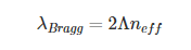 在本示例中要考慮的光纖布拉格光柵(FBG)由具有交替折射率和恒定周期性的纖芯制成。眾所周知,沿著光纖主軸的折射率變化可以在布拉格波長(λ_Bragg)下引起反向傳播模式的耦合,由以下方程給出: