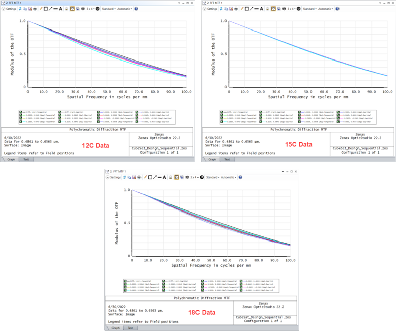 雖然此處重點介紹了 FFT MTF 和點列圖,但序列模式下提供的任何分析都可用于檢查潛在的性能影響。分析系統(tǒng)性能如何受到在軌條件的影響是理解在進行制造之前是否應(yīng)該對設(shè)計進行任何迭代的關(guān)鍵。
