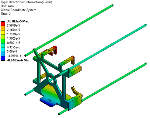 該形變數(shù)據(jù)將直接與 OpticStudio 中原始模型的性能數(shù)據(jù)進行比較。在運行任何FEA(有限元分析)之前,Ansys Mechanical 假設(shè)光機械和光學(xué)器件浸泡在室溫環(huán)境中,且沒有對光學(xué)器件施加任何應(yīng)力。因此,我們可以假設(shè)原始序列模型模擬了光學(xué)系統(tǒng)在環(huán)境溫度和壓力下的性能。