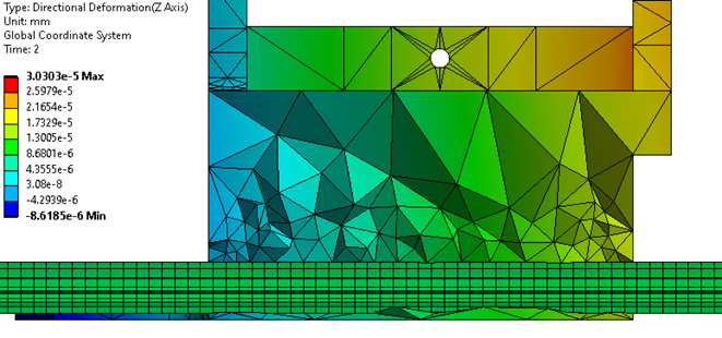 圖12:Ansys Mechanical 中主鏡固定器上的力學(xué)形變網(wǎng)格視圖