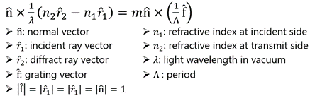 一旦從相位圖上確定了光柵的周期,就可以用下面的衍射方程來(lái)計(jì)算出衍射光線的方向: