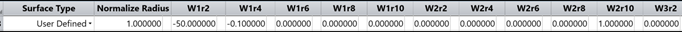 這個(gè)表面與原生二元面2(Binary 2)表面相似,但有一些區(qū)別。它只支持平面,并且只有10階以下的相位項(xiàng)。這個(gè)曲面允許不同的波長(zhǎng)對(duì)應(yīng)不同的相位分布。參數(shù)被命名為 Wxry,其中x是波長(zhǎng)數(shù),y是二元面2(Binary 2)相位項(xiàng)數(shù)。如果 metalens 被設(shè)計(jì)成對(duì)不同的波長(zhǎng)有不同的響應(yīng)(相位分布),那么這個(gè)面就很有用。請(qǐng)注意,這需要特定的設(shè)計(jì),以使 metalens 對(duì)不同的波長(zhǎng)有不同的表現(xiàn)。在使用這個(gè) DLL 之前,請(qǐng)向 metalens 設(shè)計(jì)者咨詢。