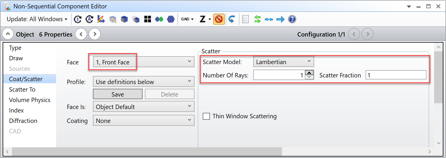 進行光線追跡并觀察輸出特性的差異。確保在光線追跡控件對話框選中“散射光線 (Scatter Rays)”!
