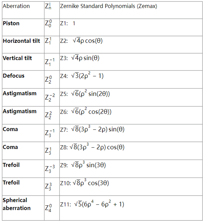 Zemax 將設置連續(xù)的 Zernike 標準多項式作為像差表達方式。