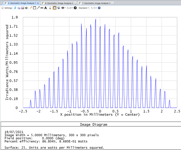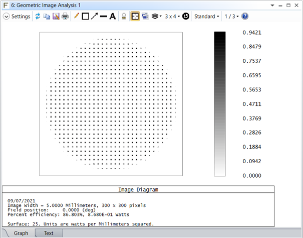 更多相關信息,請參閱如何將 POP 與微透鏡陣列結合使用。與幾何圖像分析一樣,可以看到傳感器平面中的輻照度。