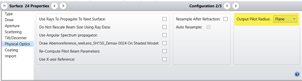 請注意,在 Surface 24 上,輸出 Pilot 光束半徑強制設置為平面。
