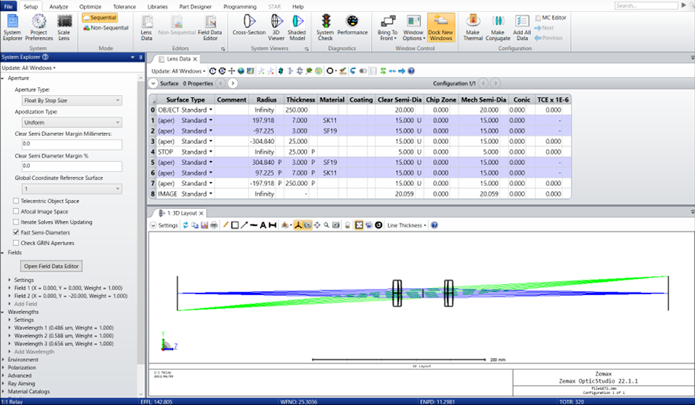 作為一個(gè)例子,我們將使用一個(gè)等倍率的光學(xué)系統(tǒng),如下圖所示: