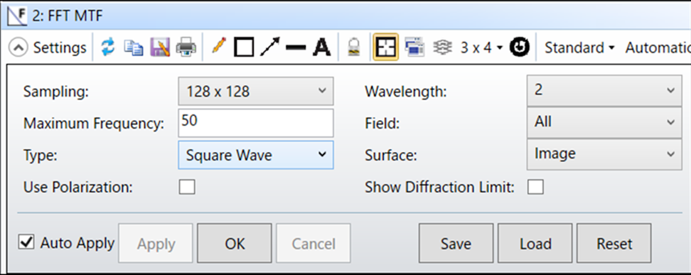 MTF設(shè)置如下圖所示:解析圖使用的是 "方波"。