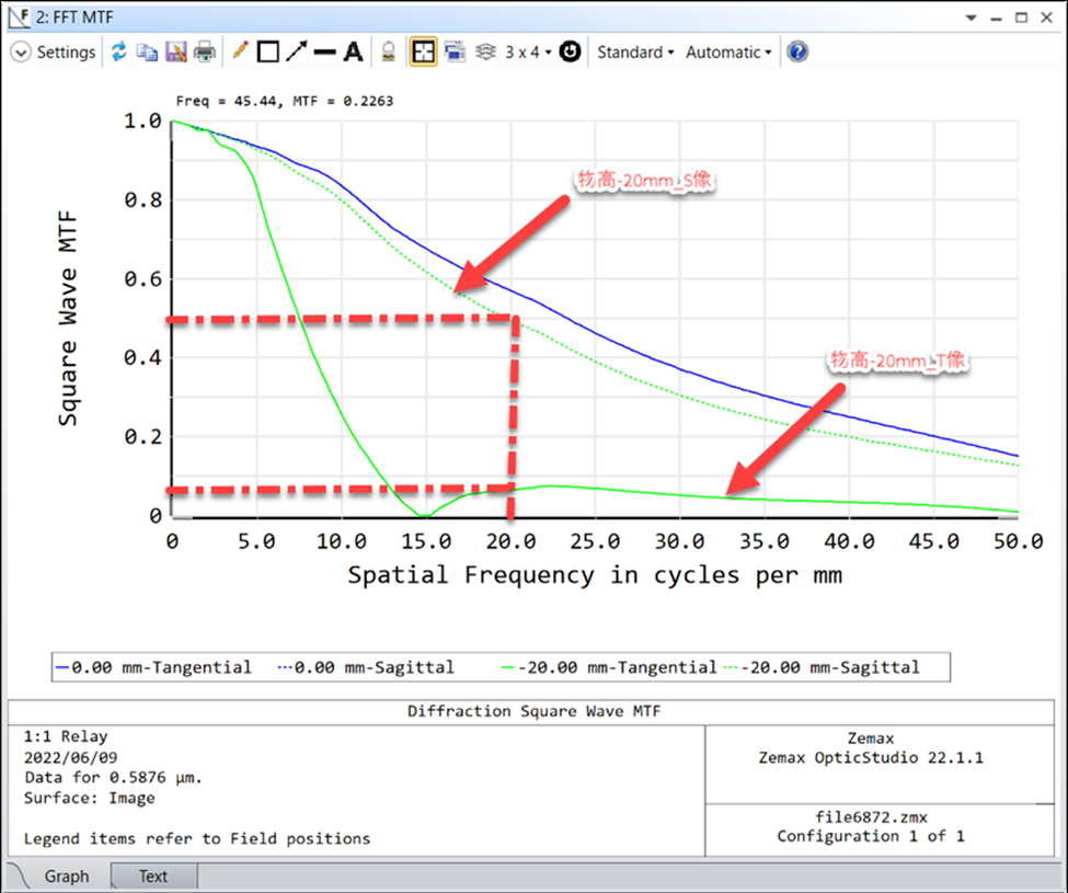 在物體高度為-20毫米時(shí)檢查20個(gè)周期/毫米,表明S圖像_50% T圖像6%。