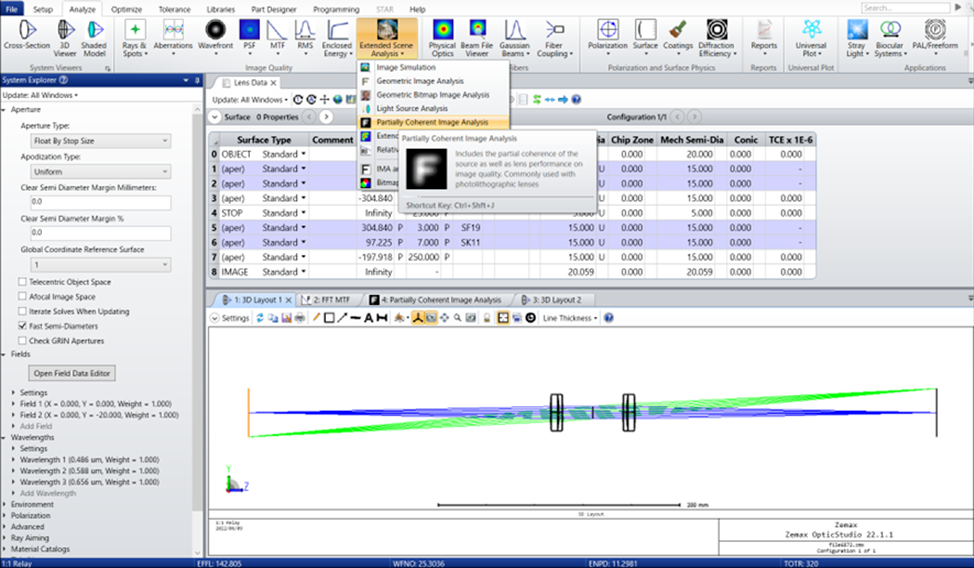 選擇分析→擴(kuò)展光源分析→部分相干圖像分析。