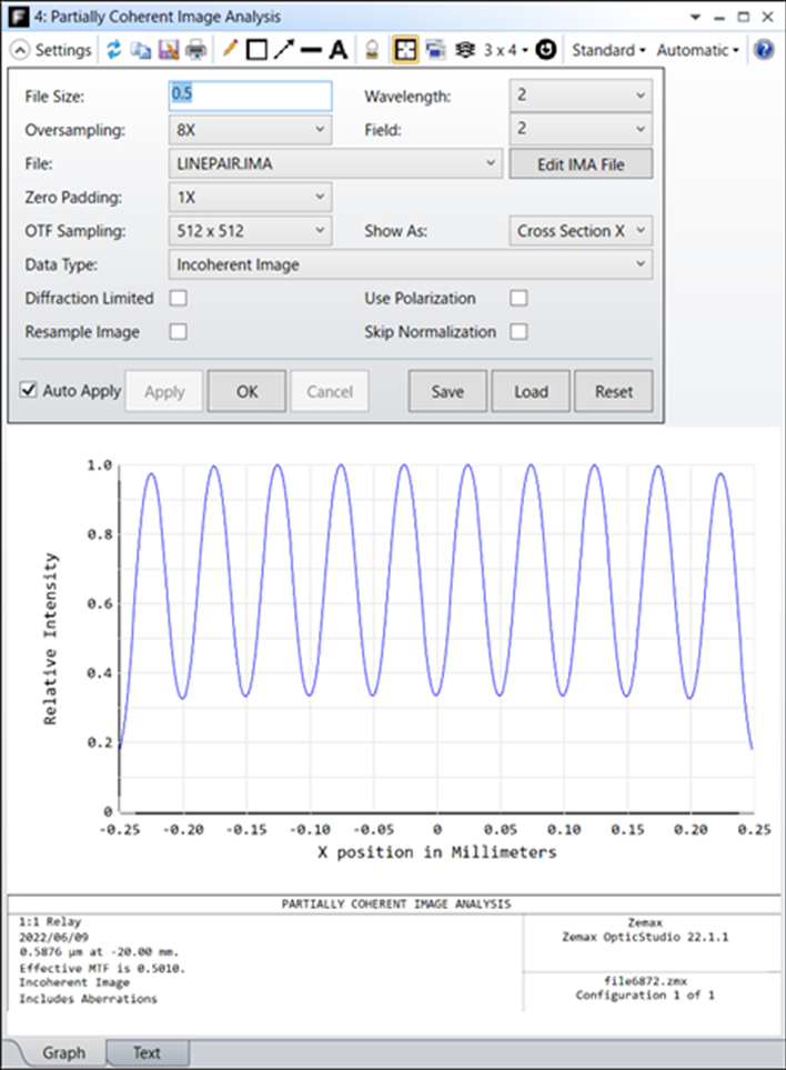 在這個(gè)模擬中,使用了'LINEPAIR.IMD'文件。