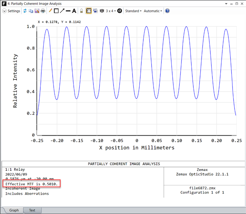 真正的MTF是通過(guò)設(shè)置顯示方法為X-section來(lái)計(jì)算的。