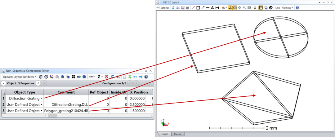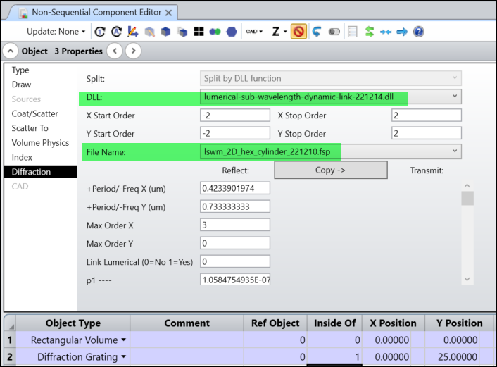 用戶需要將光柵文件放在此文件夾中,以便將其用作光柵結構。如果我們檢查對象 3,我們可以看到它選擇 lswm_2D_hex_cylinder.fsp 作為光柵結構。