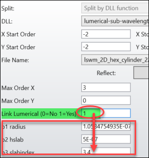 2.將參數“Link Lumerical (0=No 1=Yes)”設置為 1。