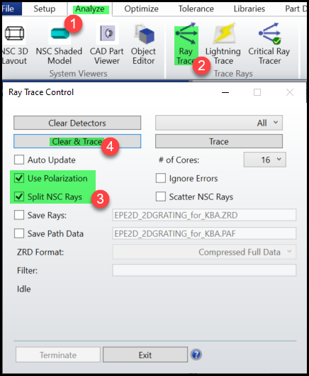 打開文件時,已經可以看到檢測器查看器上已經有一個圖像。建議用戶嘗試打開“光線追蹤控制”對話框并自行追蹤它,看看它是如何工作的。