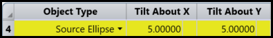 請注意,這僅顯示中心場的結果,即來自圖像源上中心像素的光。我們將“傾斜約 X”和“傾斜約 Y”設置為 5 度,以便檢查不同入射光束的結果。