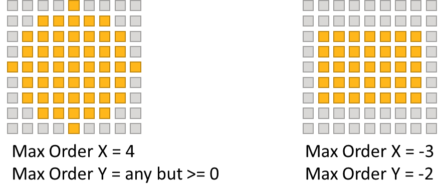 當 X<0 或 Y<0 時,在諧波空間中對矩形區(qū)域進行采樣。矩形區(qū)域的 x 和 y 方向的半寬是最大階數 X 和 Y 的絕對值,如右側所示。