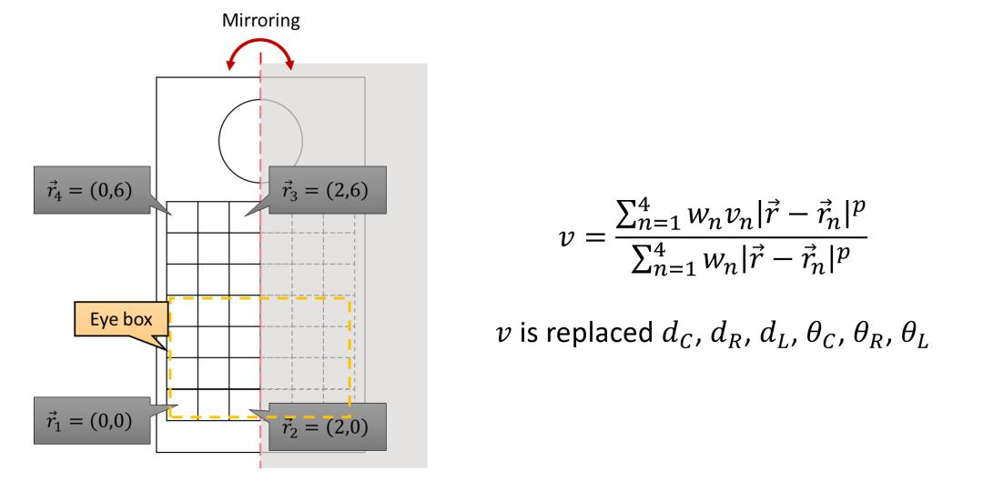 中的任意一個。n代表1,2,3,4中的任意一個數(shù)字,對應(yīng)于 4 個角的部分。由這個方程可知,每個部分的 7 個光柵參數(shù)可以通過 4 個角的參數(shù)和Wn和非線性功率p來進(jìn)行一些加權(quán)來控制。請注意,對稱性也被用于減少系統(tǒng)的大小和變量的數(shù)量。