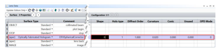 2.改變透鏡前表面(表面 #3)為光學(xué)構(gòu)造全息圖