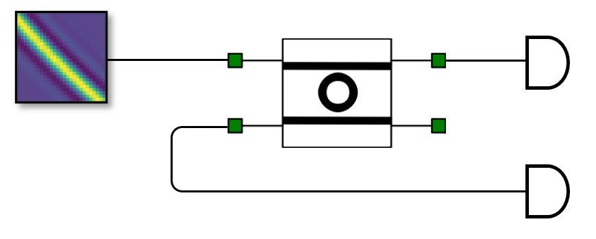 一旦產(chǎn)生雙光子波函數(shù),它就可以用作qINTERCONNECT中電路的輸入。例如,可以使用滴環(huán)濾光片將兩個(gè)光子與光源分開。