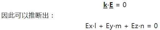 電場的振幅和偏振態(tài)可由向量E表示,它包含三個分量 {Ex, Ey, Ez} 且各分量均為復數(shù)。光線傳播的方向向量由k表示,它也包含三個分量 {l, m, n},其中l(wèi), m, n為光線在x, y, z方向上的方向余弦。電場向量E必須垂直于方向向量k,因此: