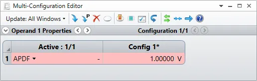 現(xiàn)在假設(shè)我們的目的是確定光源最理想的高斯光纖模式,以使耦合效率達(dá)到最大。這可以通過(guò)將最大耦合效率設(shè)為目標(biāo),優(yōu)化切趾因子來(lái)實(shí)現(xiàn)。您可以使用多重結(jié)構(gòu)操作數(shù)APDF來(lái)參數(shù)化地控制切趾因子的數(shù)值。打開(kāi)多重結(jié)構(gòu)編輯器(位于設(shè)置菜單最右邊的編輯器 (MC Editor) 按鈕),雙擊屬性單元格,在操作數(shù)下拉菜單中選擇APDF(或者在輸入框中輸入“APDF”),完成輸入后您可以像在其它編輯器中一樣將其設(shè)為變量。