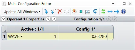 在不使用多重結(jié)構(gòu)編輯器時(shí),我們是無(wú)法對(duì)系統(tǒng)波長(zhǎng)進(jìn)行公差分析的。盡管存在公差操作數(shù)TWAV,但它只是用于把檢測(cè)中的條紋公差轉(zhuǎn)換算成實(shí)際物理尺寸的公差。然而我們可以利用多重結(jié)構(gòu)操作數(shù)WAVE來(lái)分析當(dāng)波長(zhǎng)改變時(shí)系統(tǒng)的性能是如何變化的。首先,請(qǐng)?jiān)诙嘀亟Y(jié)構(gòu)編輯器中定義一個(gè)單獨(dú)的多重結(jié)構(gòu)操作數(shù)WAVE。
