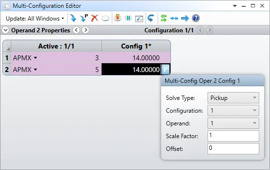 在多重結(jié)構(gòu)編輯器中同時(shí)定義這兩個(gè)量,我們可以用一個(gè)拾取求解將它們聯(lián)系起來(lái)。求解設(shè)置如下圖所示。
