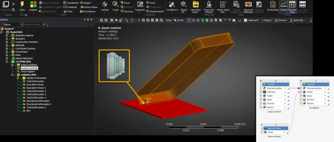 LS - DYNA Workbench 系統(tǒng)(WB LS - DYNA)允許用戶使用 LS - DYNA 求解器對模型進(jìn)行顯式動力學(xué)分析。雖然它允許在一個環(huán)境中進(jìn)行預(yù)處理、求解和后處理,但該工作流需要結(jié)合使用 WB LS - DYNA 和 LS Prep - Post 進(jìn)行高級后處理。