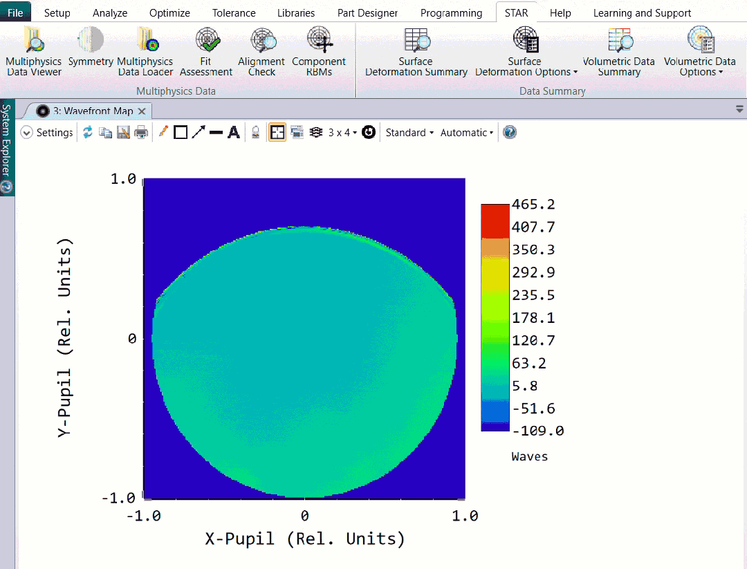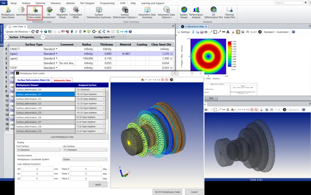 · STAR System Viewer - 顯示由于擬合的多物理場數(shù)據(jù)而導(dǎo)致的表面變形和光學(xué)屬性變化的系統(tǒng)范圍視圖。