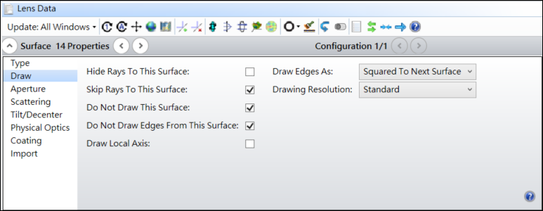 為了更清晰地觀察系統(tǒng)視圖,對表面 14 的表面屬性 (Surface Properties) …繪圖 (Draw ) 做如下更改: