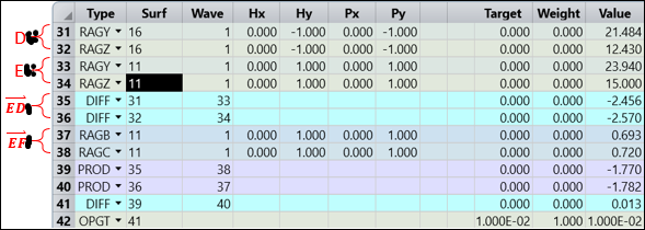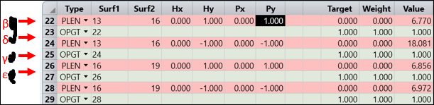 下一步是確保光線在表面 13 和 16 之間以及表面 16 和 19 之間的傳播可行,這需要限制所有相關(guān)的 PLEN 操作數(shù)都為正數(shù)。