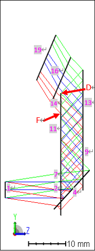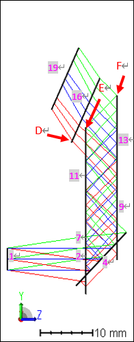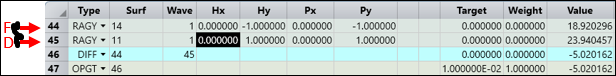 最后的約束條件是點(diǎn) F(邊緣光線穿過表面 14)的 Y 位置必須大于點(diǎn) D 的 Y 位置,如下圖所示。為了得到點(diǎn) F 的位置,我們需要使用虛擬曲面 14:
