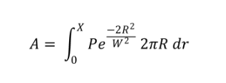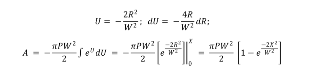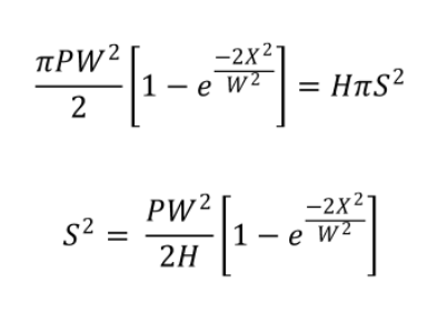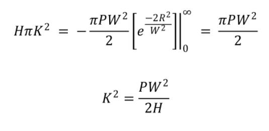 對(duì)于能量的 1/e2 處束腰為W的輸入高斯光,我們想要的輸出光的輪廓是一個(gè)在半徑 K 內(nèi)均保持均一最大值的分布。其中輸入光的輻照度分布為 Pexp{-(2R2/W2)},輸出光的輻照度分布為最大值為H、半徑為K的階躍函數(shù)。