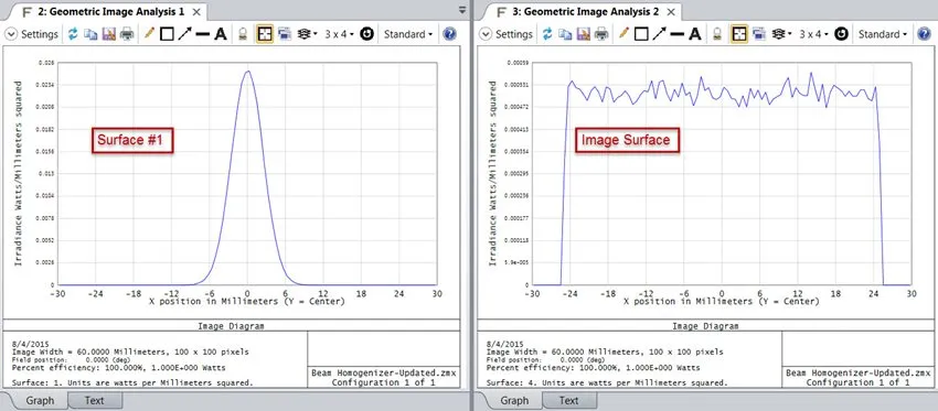 幾何圖像分析(分析-擴(kuò)展圖像分析-幾何圖像分析)可以提供表面1上的高斯分布和像面上的平頂分布。
