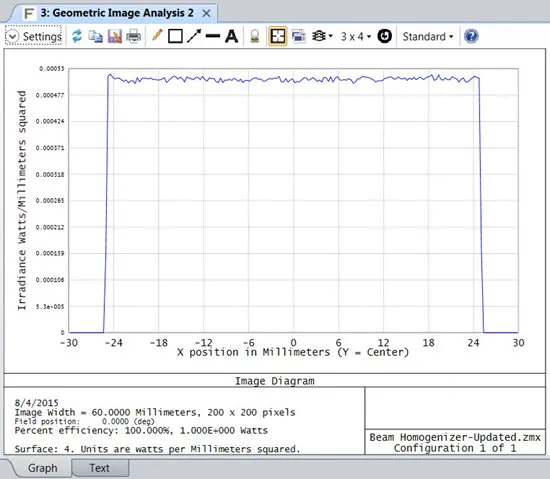 這篇文章展示了如何使用 OpticStudio 的幾何光線追跡來優(yōu)化一個(gè)光束整型器。使用幾何光線可以進(jìn)行快速的優(yōu)化,并且其結(jié)果顯示像面上的輻照度表現(xiàn)出很好的均一性。