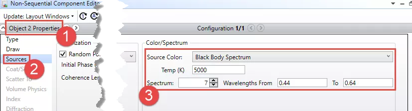 選擇光源 (Source) 并設定黑體輻射頻譜如下圖: