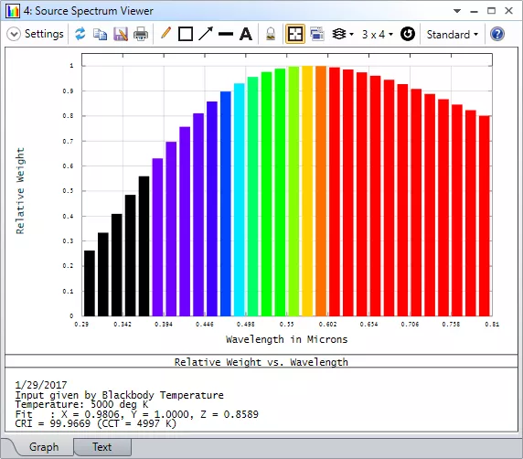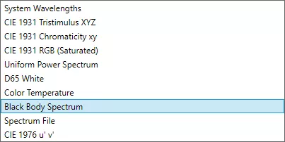 OpticStudio 內置許多常見的頻譜模型,例如黑體輻射、LED、D65 標準白光等