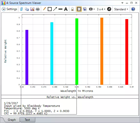 備注4:OpticStudio 除了能顯示真實色彩之外,還能輸出RGB等原始數(shù)據(jù)。也能計算頻譜分布、色度坐標、CCT 色溫等數(shù)據(jù)。 這些數(shù)據(jù)都可以被進一步優(yōu)化,或是使用API對接到其他軟件中進行分析和處理。