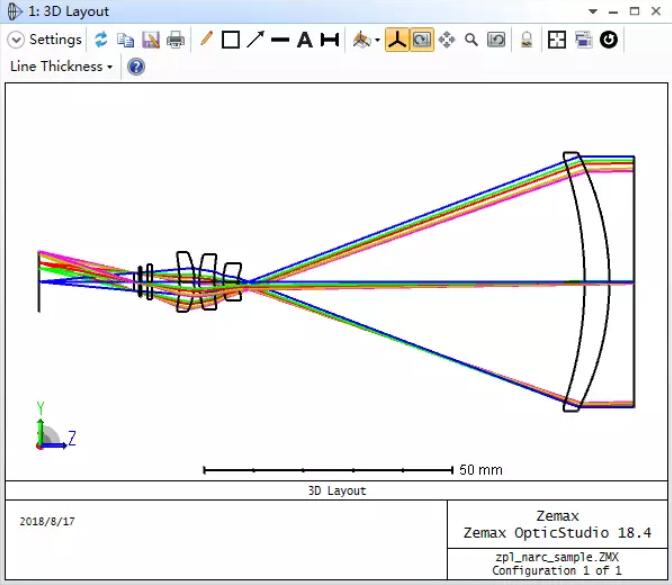 作為最終輸出,數(shù)據(jù)結(jié)果“NarcAnalysis Result.txt”以文本文檔的形式保存在到設(shè)計(jì)文件夾中。文本文件包含設(shè)計(jì)文件路徑,工作波長(zhǎng),溫度數(shù)據(jù)(機(jī)械結(jié)構(gòu),探測(cè)器,環(huán)境),冷反射表面數(shù),光學(xué)透過(guò)率,對(duì)視場(chǎng)的每個(gè)表面NITD分布,總NITD,冷反射的漸暈數(shù)據(jù),鬼像文件的透射率數(shù)據(jù),yni數(shù)據(jù)和i/ibar數(shù)據(jù)。