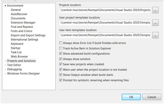 Windows SDK 7.1(https://www.microsoft.com/en-us/download/details.aspx?displaylang=en&id=8279)。下載后,找到Tools…Options…Environment…Projects and Solutions。在該窗口勾選“Show advanced build configurations”且保證設(shè)置如下: