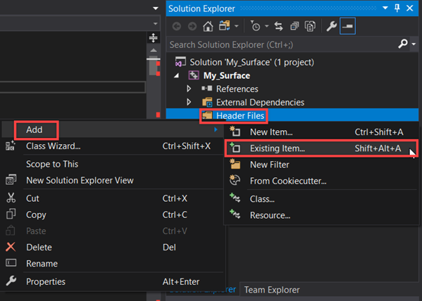 為修正這個(gè)問(wèn)題,直接把 {Zemax}\DLL\Surfaces下面的“usersurf.h”復(fù)制并粘貼到source code同一個(gè)路徑下,然后右鍵點(diǎn)擊“Header Files”來(lái)載入頭文件并導(dǎo)入現(xiàn)有的代碼中。