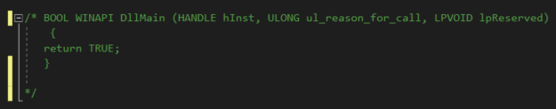 如果還沒(méi)添加。那么在代碼開(kāi)頭的初始化功能區(qū)放入“extern “C” {}”。同時(shí)確保把“BOOL WINAPI DllMain”這一行注釋掉。