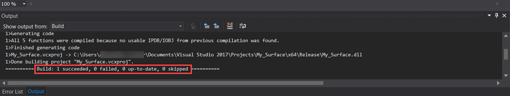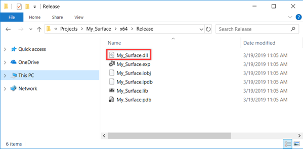 這個(gè)DLL會(huì)在solution文件夾下。對(duì)于“My_Surface”這個(gè)項(xiàng)目而言,該DLL會(huì)在{Project directory}\My_Surface\x64\Release。