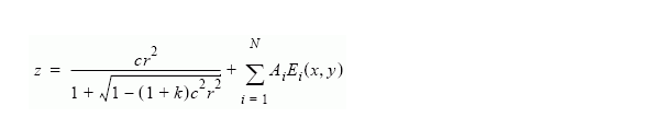 然而,在光學(xué)系統(tǒng)設(shè)計(jì)時(shí),保留基本圓錐曲線部分的概念,并使該部分向自由曲面形式偏離,是非常有助于設(shè)計(jì)的。原因很快就會(huì)揭曉。我們將使用 擴(kuò)展多項(xiàng)式面( Extended Polynomial Surface )物體,這個(gè)表面可由以下形式的方程描述: