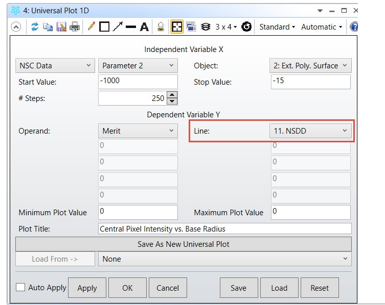 可以利用優(yōu)化操作數(shù) NSDD 計(jì)算評(píng)價(jià)函數(shù)中所述的輻照度質(zhì)心。NSDD 代表非序列非相干強(qiáng)度數(shù)據(jù),是讀取非相干探測(cè)器數(shù)據(jù)最有效的操作數(shù)。NSDC 等效于相干計(jì)算。NSDD 操作數(shù)的語(yǔ)法如下: