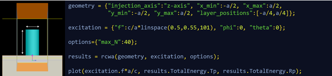 在這一步中,我們掃描納米棒的高度和半徑,并獲得其透射、相位和近場信息,從而選擇出對應(yīng)所需傳輸和相位特性的納米棒高度情況,然后保存相位與光場相對于半徑的結(jié)果以供后續(xù)步驟使用。RCWA求解算法將作為單元原子模擬的推薦/補(bǔ)充工具引入,并與FDTD進(jìn)行比較以進(jìn)行驗(yàn)證。