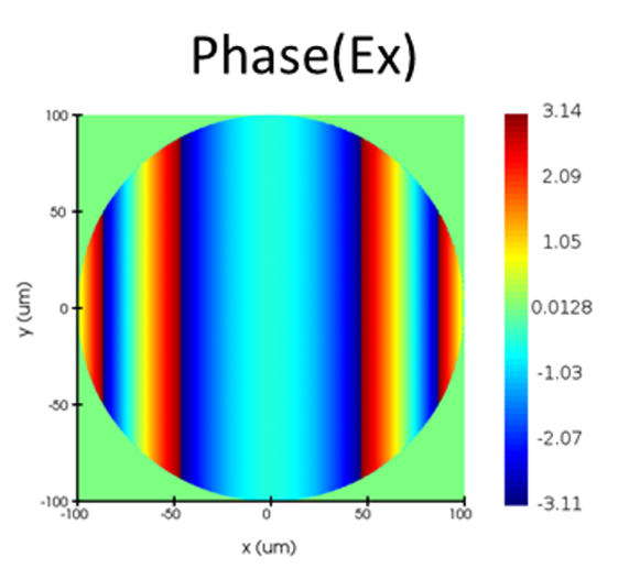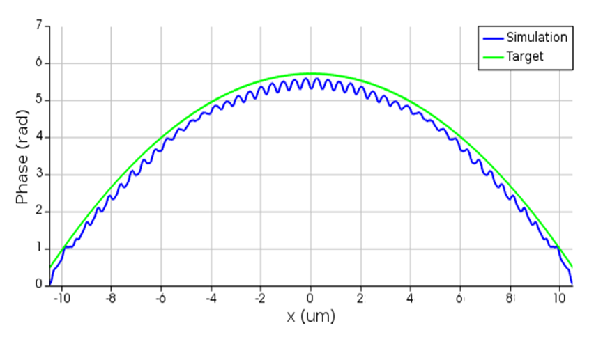 運(yùn)行腳本文件fdtd_full_lens_plot_field.lsf的“第1部分”,沿x軸繪制相位(上述相位圖中的虛線)。